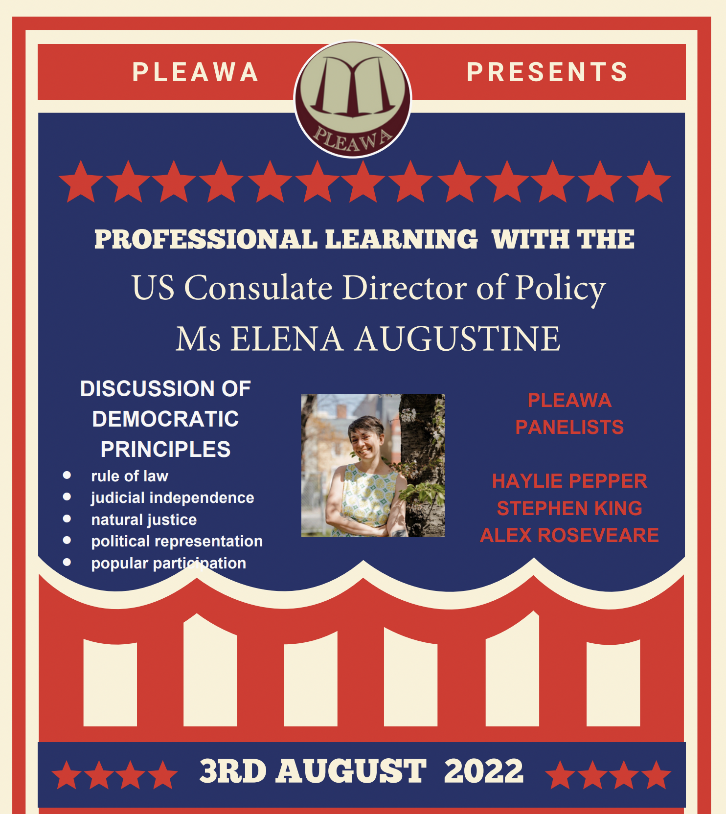 An online panel with Director of Policy at the US Consulate in Perth, Ms. Elena Augustine.